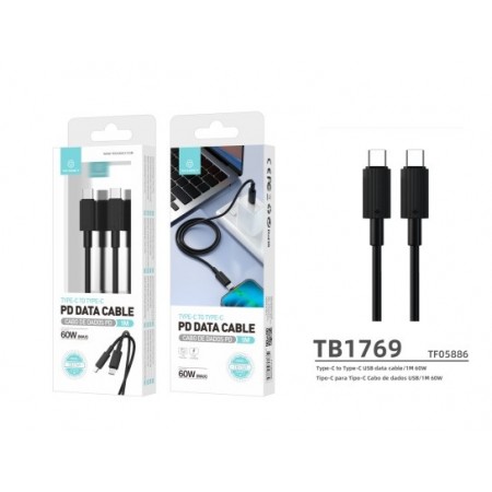 Cabo Type-C Para Type-C Preto 1M 60W TB1769...