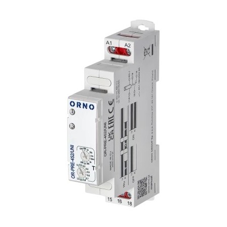 Relé monofuncional com 1 função de tempo e 8 faixas de tempo; Contatos AgSnO2 adequados para operação com cargas indutivas; tensão de entrada universal (AC/DC); baixo consumo de energia (economia de energia elétrica).