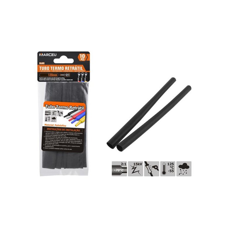Manga Termo Retrátil Preta 10 Unidades