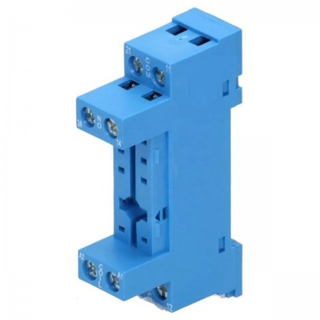 Base para relé compatível com calha DIN para séries 40.52, 40.61, 40.51, 44.52 e 44.62. Possui 8 pinos, suporta 10A a 250VAC e terminais de parafusos. Montagem em calha DIN, temperatura de funcionamento de -40 a 70°C. Dimensões de 68x35.5x15.5mm para uma montagem estável em quadros elétricos.