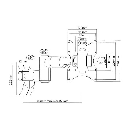 Dimensões: 220 x 220 x (101 ... 463) mm