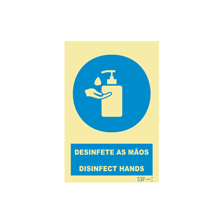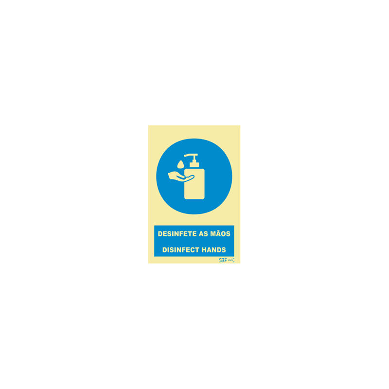 Placa Sinalética Desinfete as Mãos PVC Fotoluminescente S3F