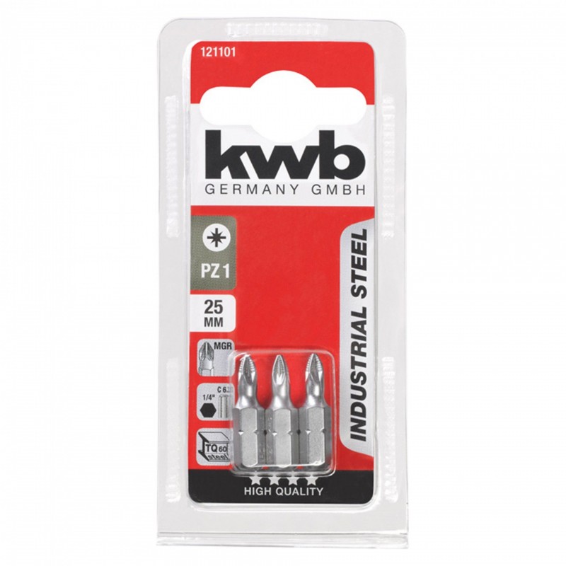 Conjunto de 3 Bits Pozidrive 25MM Industrial SB KWB