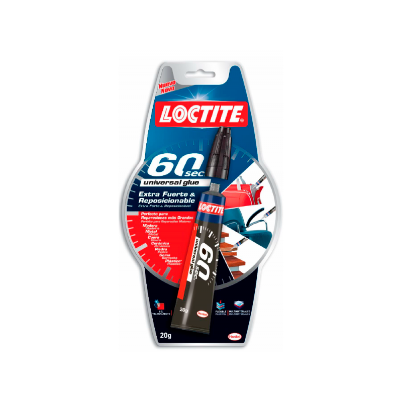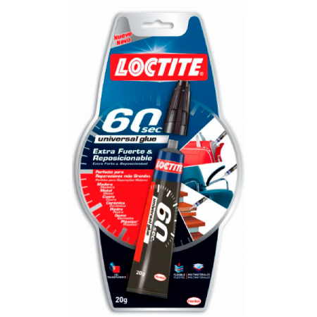 A Loctite 60 Segundos caracteriza-se por ser uma Cola transparente multiusos, muito versátil, que cola com extrema rapidez uma ampla variedade de materiais comuns. É concebida para uma utilização doméstica e a sua fórmula de gel – que não goteja – pode ser usada em superfícies verticais ou suspensas.