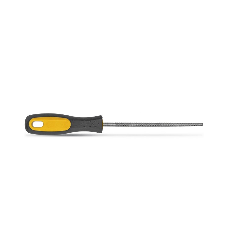 Lima redonda bastarda com corpo em aço carbono, tem um punho revestido a borracha para maior comodidade e um desbaste rápido dos mais variados metais.