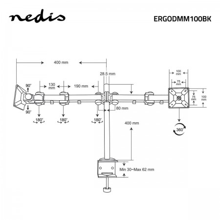 Suporte de Mesa 2 Monitores NEDIS