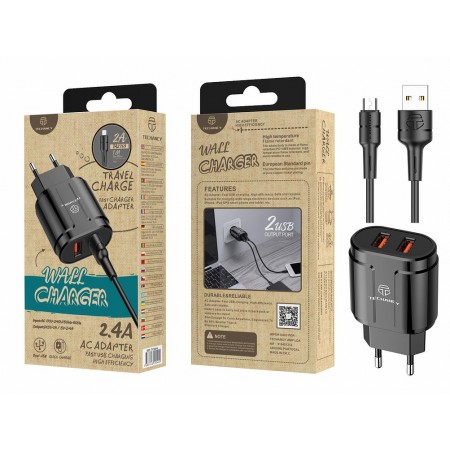 Carregador Duplo com Cabo Micro 2.4A TECHANCY