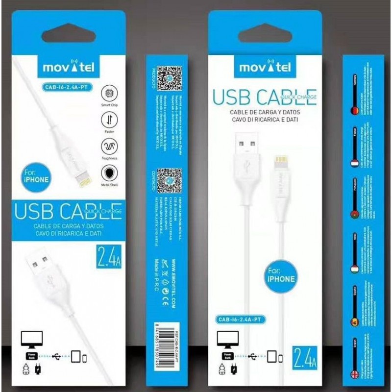 Cabo USB para Lightning CAB-16-2.4A-PT MOVITEL